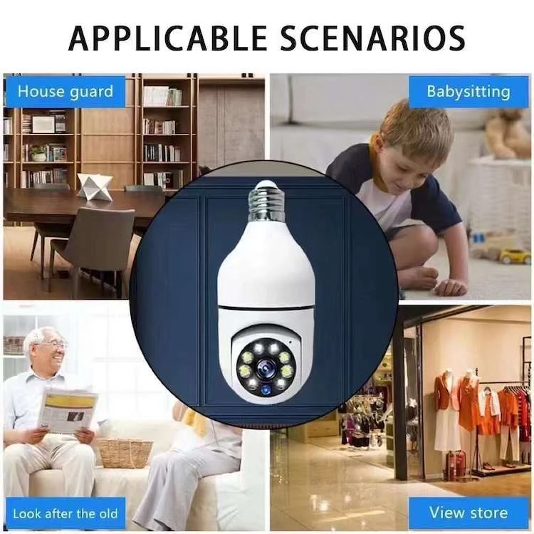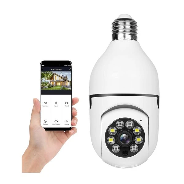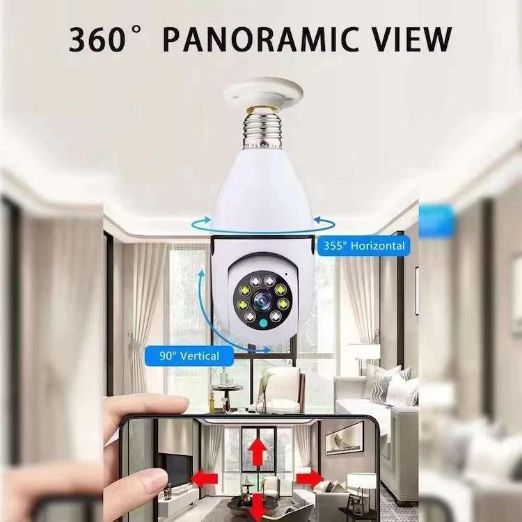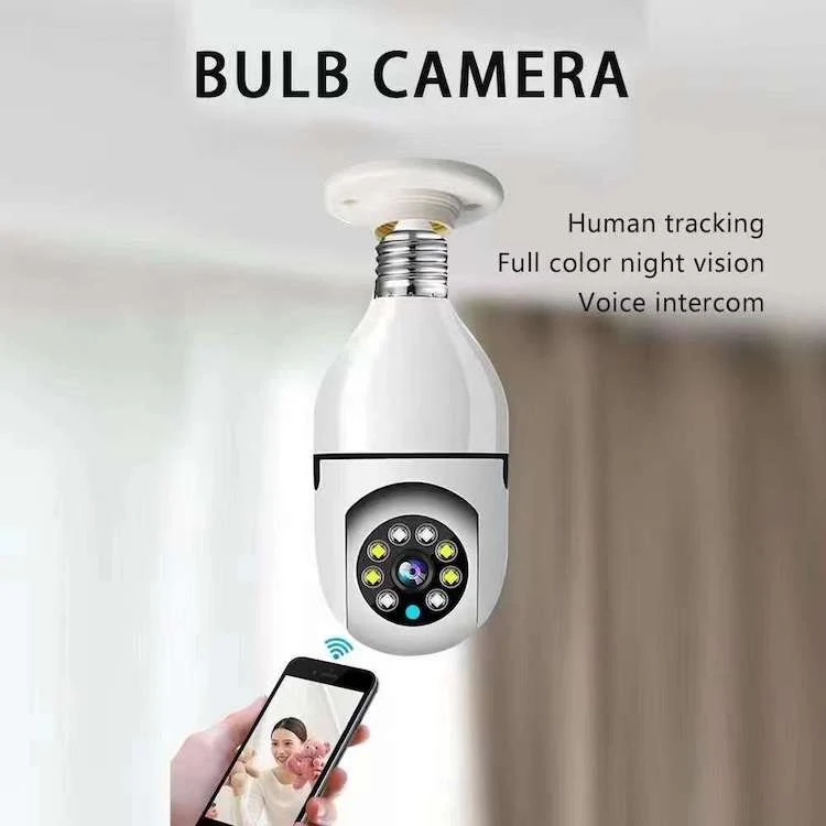 The V380 Pro 1080P Light Bulb PTZ Camera is a versatile and discreet security solution designed to blend into any indoor space. This innovative camera fits into a standard E27 light bulb socket and offers a 360-degree panoramic view, making it ideal for full-room monitoring. It features Full HD resolution, full-color night vision, and smart tracking capabilities via the V380Pro app. With support for up to 128GB TF card storage, motion detection alerts, and two-way audio (if applicable), this camera is perfect for home or office security without complex wiring.